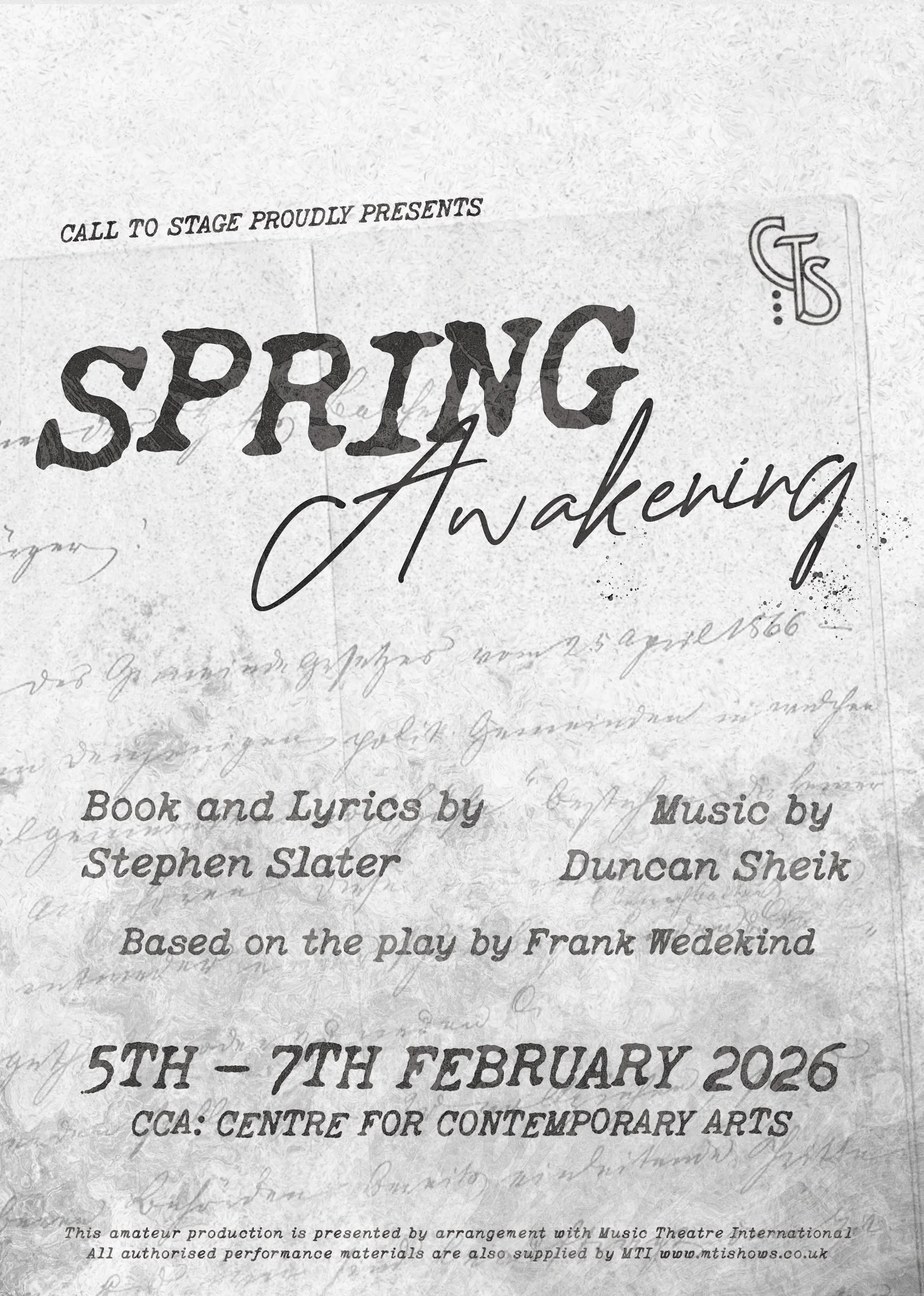 Past Productions Spring Awakening 2026 More Info Jesus Christ Superstar 2025 More Info The Addams Family 2023 More Info Godspell 2023 More Info Company 2022 More Info Out of the Darkness 2021 More Info