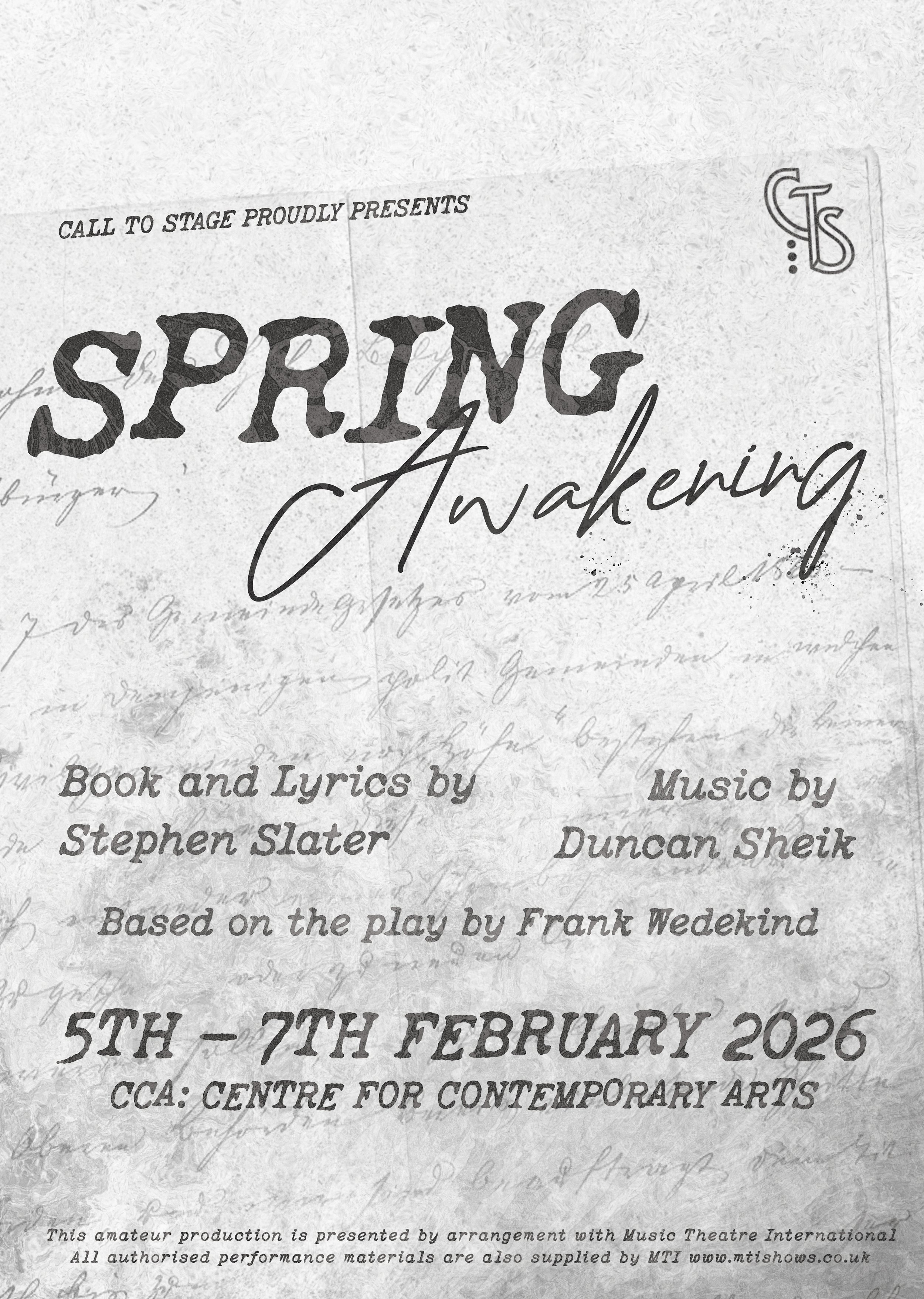 Call to Stage presents an intimate, visually poetic reimagining of Spring Awakening at The National Piping Centre this February - a powerful contemporary rock musical about youth, censorship and the cost of forbidden knowledge.